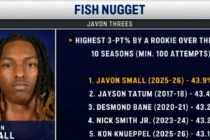 灰熊次轮48号秀斯莫尔本赛季三分命中率43.9% 创近10年来新秀纪录